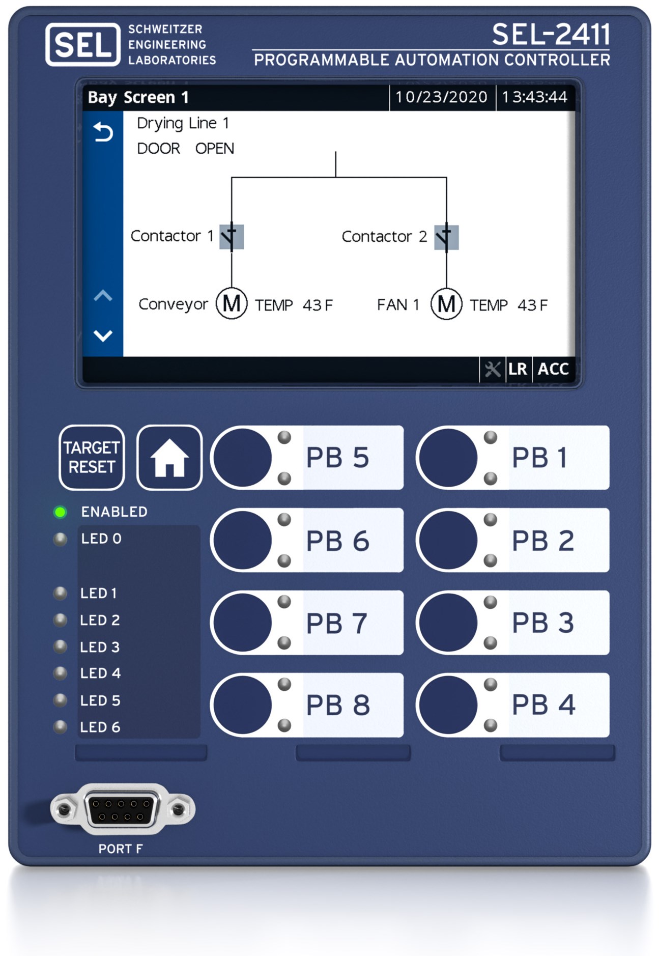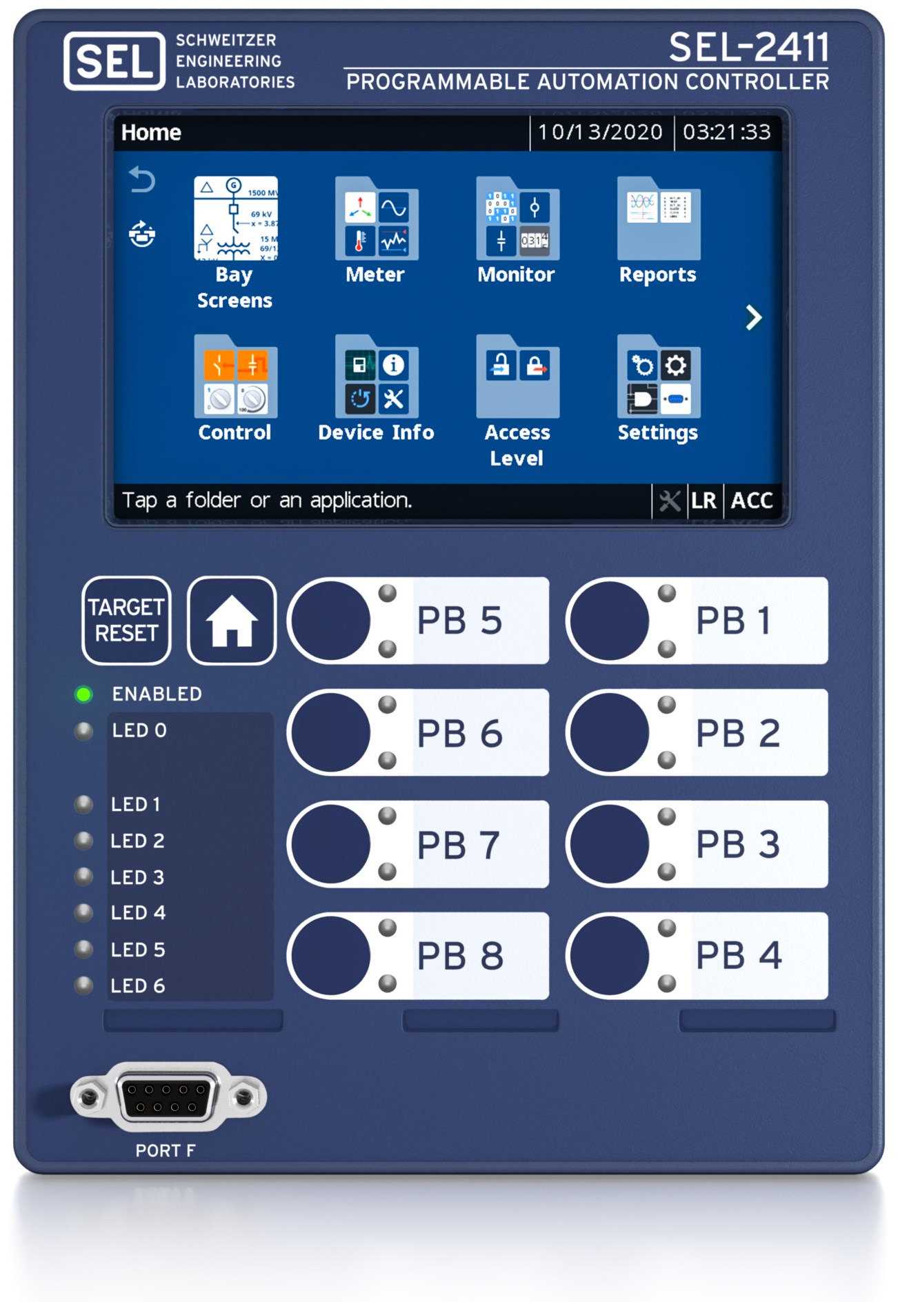 The SEL-2411 Programmable Automation Controller offers an affordable control and monitoring solution for power and industrial automation systems. Fully customizable and designed to withstand harsh physical and electrical environments, the SEL-2411 is built and tested to meet mission-critical IEEE and IEC protective relay standards. With flexible communications and I/O options, the SEL-2411 allows you to easily integrate with SCADA and meets your sequential events reporting, station integration, remote monitoring, ac metering, and plant control system needs. As always, the SEL-2411 is protected by the SEL worldwide, ten-year product warranty.