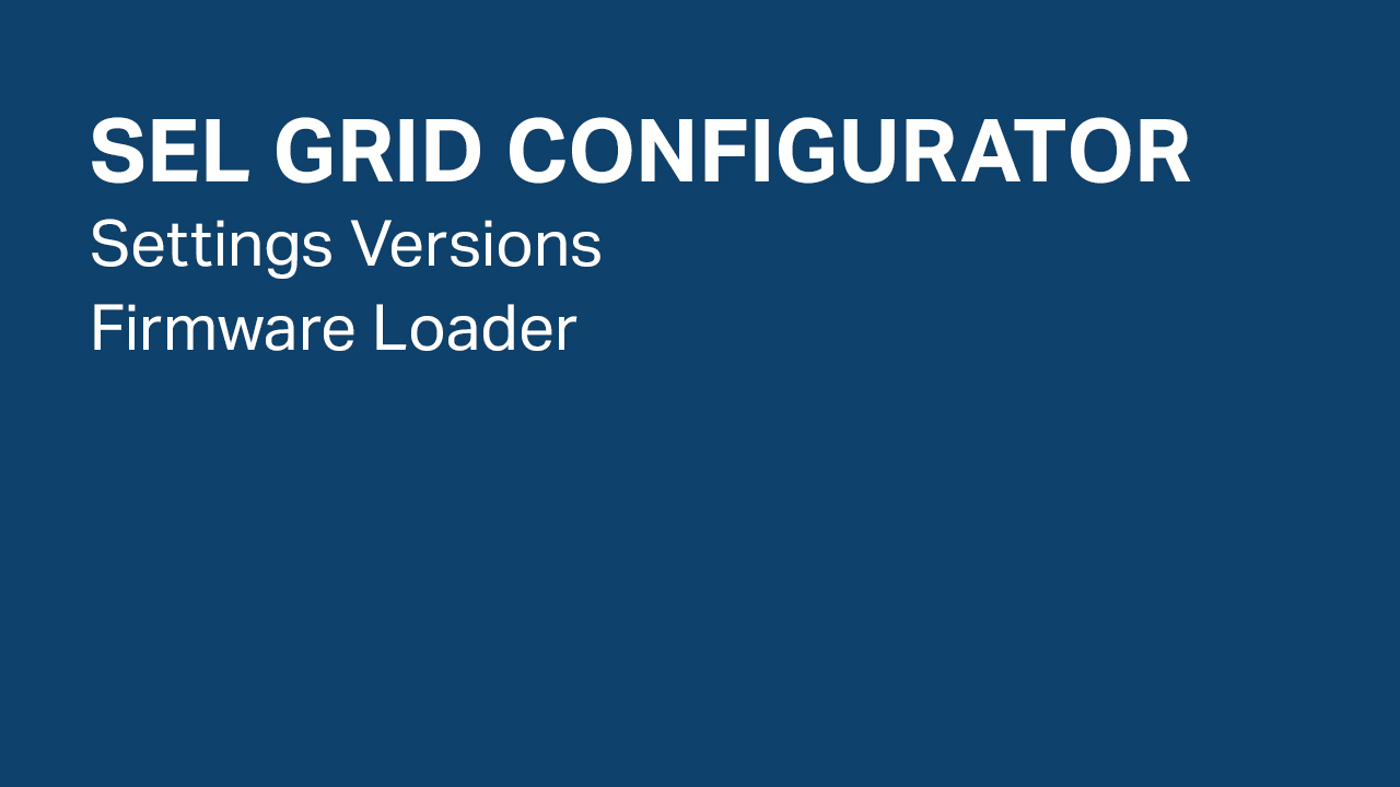 SEL Grid Configurator: Settings Versions, Firmware Loader