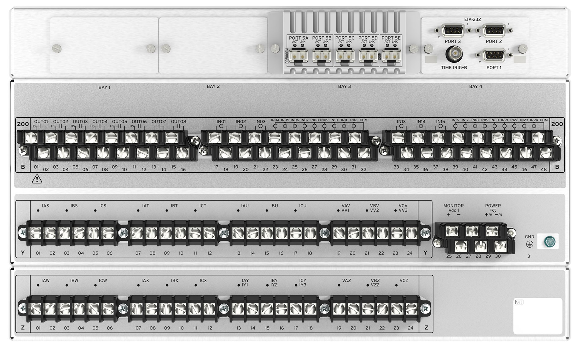 The relay can be ordered with up to an 8U chassis that can accommodate as many as three I/O boards with a wide range of input and output combinations