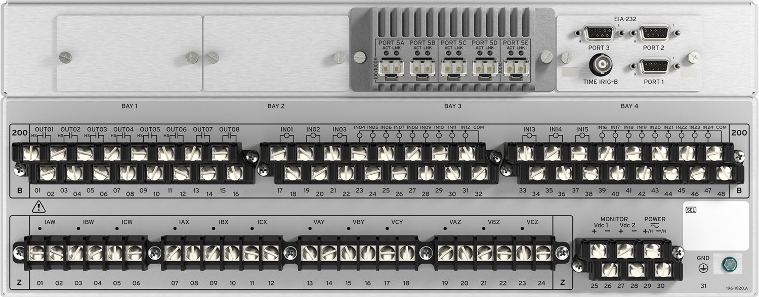Three EIA-232 serial ports for Mirrored Bits communications, SCADA, and engineering access provide flexibility to communicate with other devices and control systems. The ports include demodulated IRIG-B for precise-time input.