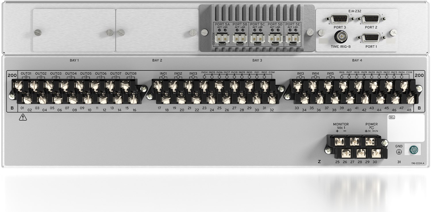 All four independent EIA-232 serial ports support SEL Fast Message, SEL ASCII, Compressed ASCII, SEL Fast Operate, SEL Fast Meter, SEL Fast SER, enhanced SEL Mirrored Bits communications, and DNP3 Level 2 Outstation as well as dial-out, Virtual Terminal, and communications with SEL-2600 series RTD modules.