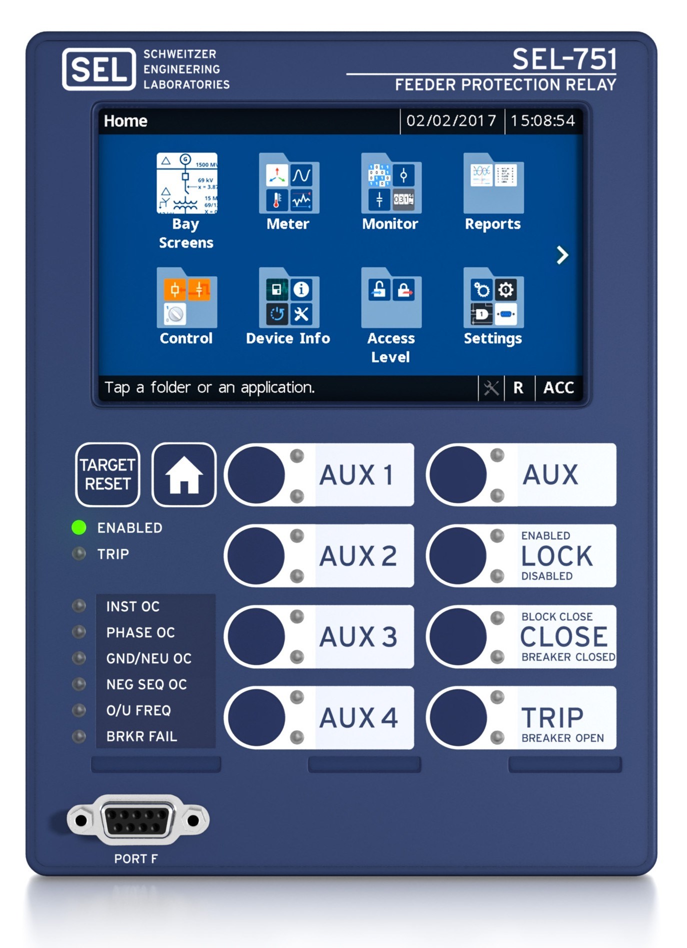The easy-to-use touchscreen interface provides a one-line mimic display for bay control and monitoring. View metered quantities, phasor diagrams, relay settings, event summaries, target statuses, Sequential Events Recorder (SER) data, and more. Extensive testing shows that the robust capacitive touchscreen display meets or exceeds industry standards as well as SEL quality and reliability requirements.