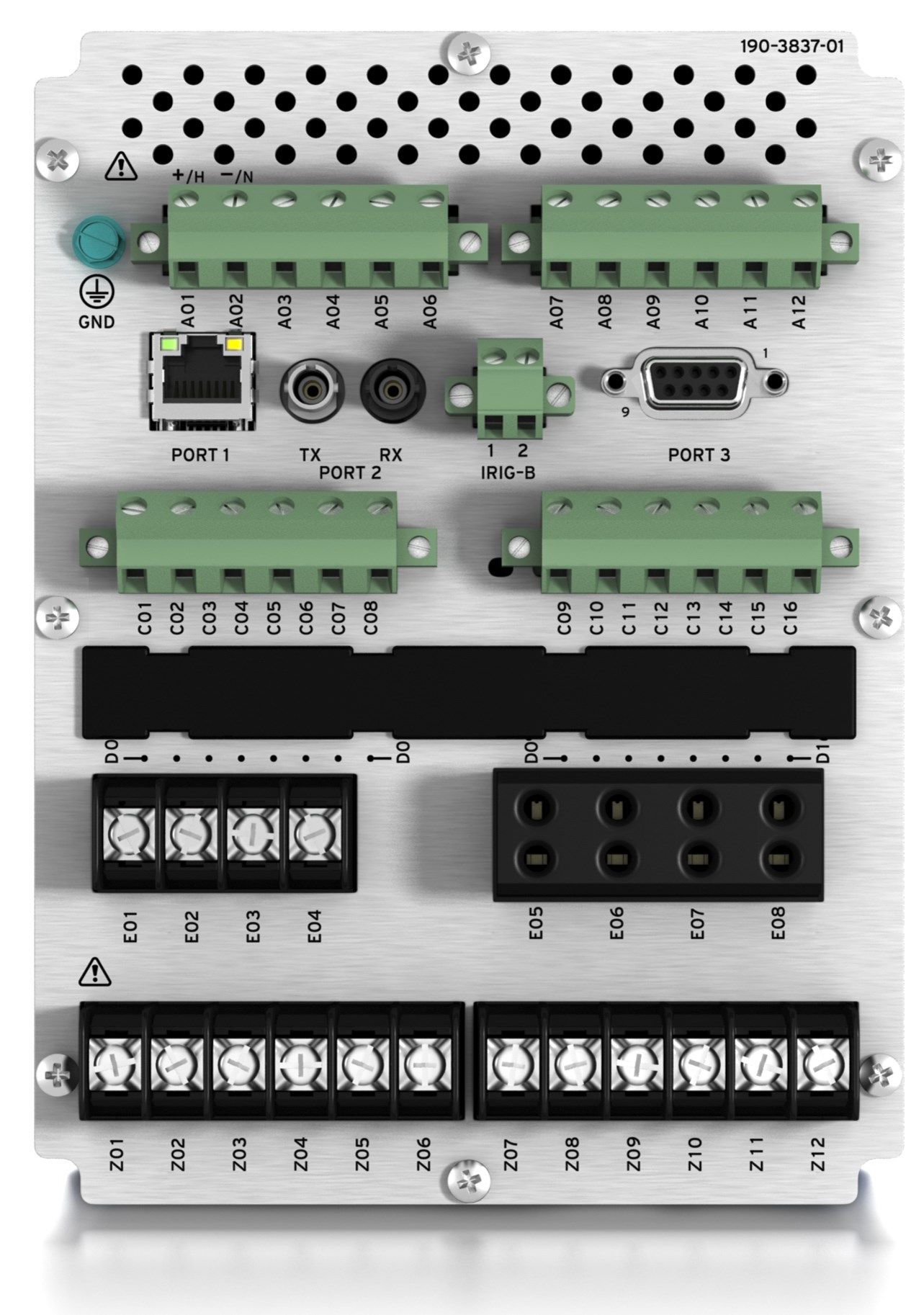 LEA Sensor Inputs—Apply the SEL-751 in medium- and low-voltage applications that use low-energy current/voltage sensors. LEA sensors for measurement of primary voltages and currents are gaining popularity owing to their excellent linearity and wide dynamic range characteristics, reduced size, reduced weight, and enhancement of personnel safety. The LEA current/voltage input card supports three current channels, Rogowski coil or low-power current inputs, three LEA voltage sensor inputs, and one 200 mA neutral input. The LEA current and voltage channels accept an RJ45 connector input, and the 200 mA neutral channel accepts a terminal block input.
