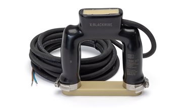 The SCT is encapsulated in flexible vinyl plastic with 600 V insulation level. The SCT base and body can be pulled apart, placed around a cable, and reconnected. Two included stainless steel worm gear clamps secure the body to the base of the current transformer and prevent water intrusion into the core.